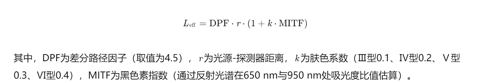 肤色修正:黑色素在近红外波段(尤其<850 nm)存在显著吸收,需根据Fitzpatrick分型修正光路径长度。修正公式为: