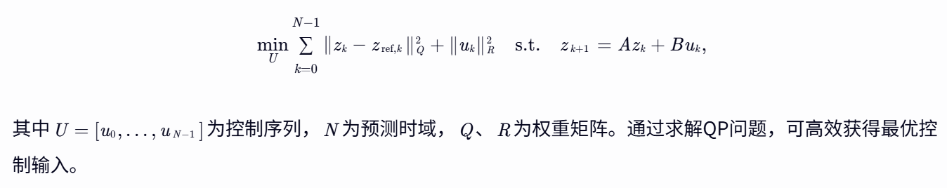 - 泰勒级数线性化:在工作点附近线性化非线性模型,构建局部线性MPC;