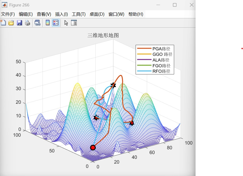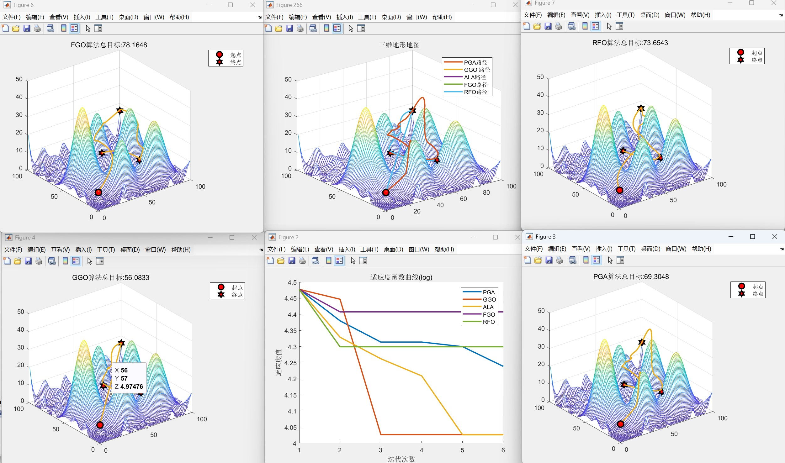 - GGO算法在复杂山地环境中路径优化效果显著,但计算效率略低于RFO。
