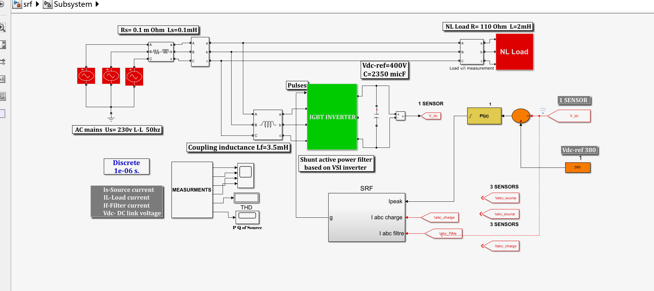 SRF算法具有检测精度高、响应速度快的显著优点,在分流有源滤波器的谐波和无功电流检测中得到了广泛应用。以某实际电力系统为例,在未接入采用SRF算法的分流有源滤波器时,由于非线性负载的作用,电网电流波形严重畸变,总谐波畸变率(THD)较高,达到35%左右,功率因数约为0.7。接入滤波器后,滤波器迅速检测并计算出电网中的谐波电流分量,然后通过逆变器产生相应的补偿电流注入电网。再次进行傅里叶分析,此时电网电流的THD显著降低,降至5%以下,功率因数提升至0.95以上,完全满足国家标准对电网谐波和功率因数的要求。