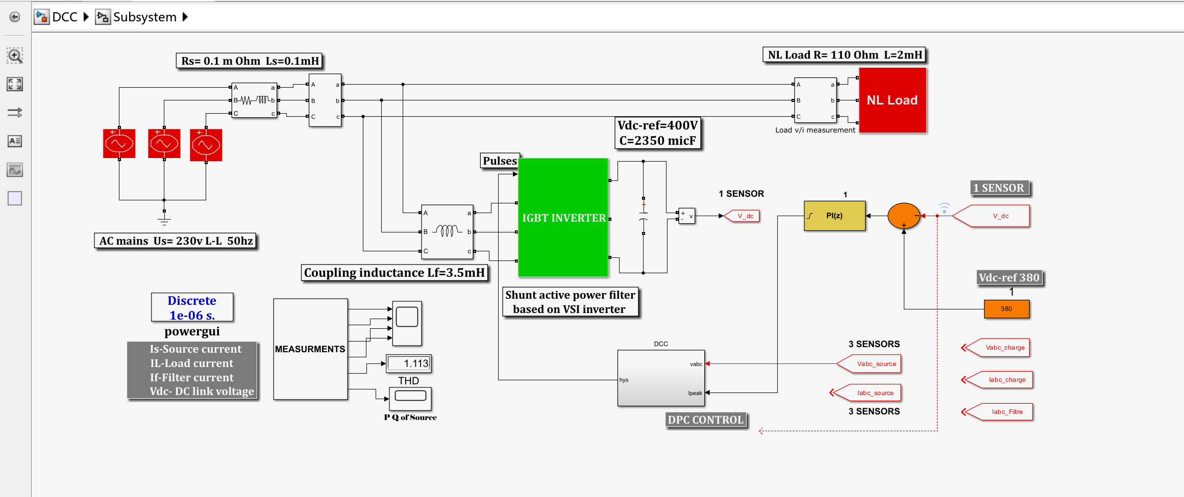 直接电流控制法(DCC)是对负载电流、APF补偿电流或电源电流进行直接控制,目的是抑制谐波电流流入电网造成谐波污染。它通过对电流的实时监测和反馈,采用合适的控制算法,使有源电力滤波器输出的补偿电流与电网中的谐波电流大小相等、方向相反,从而实现谐波的抵消。