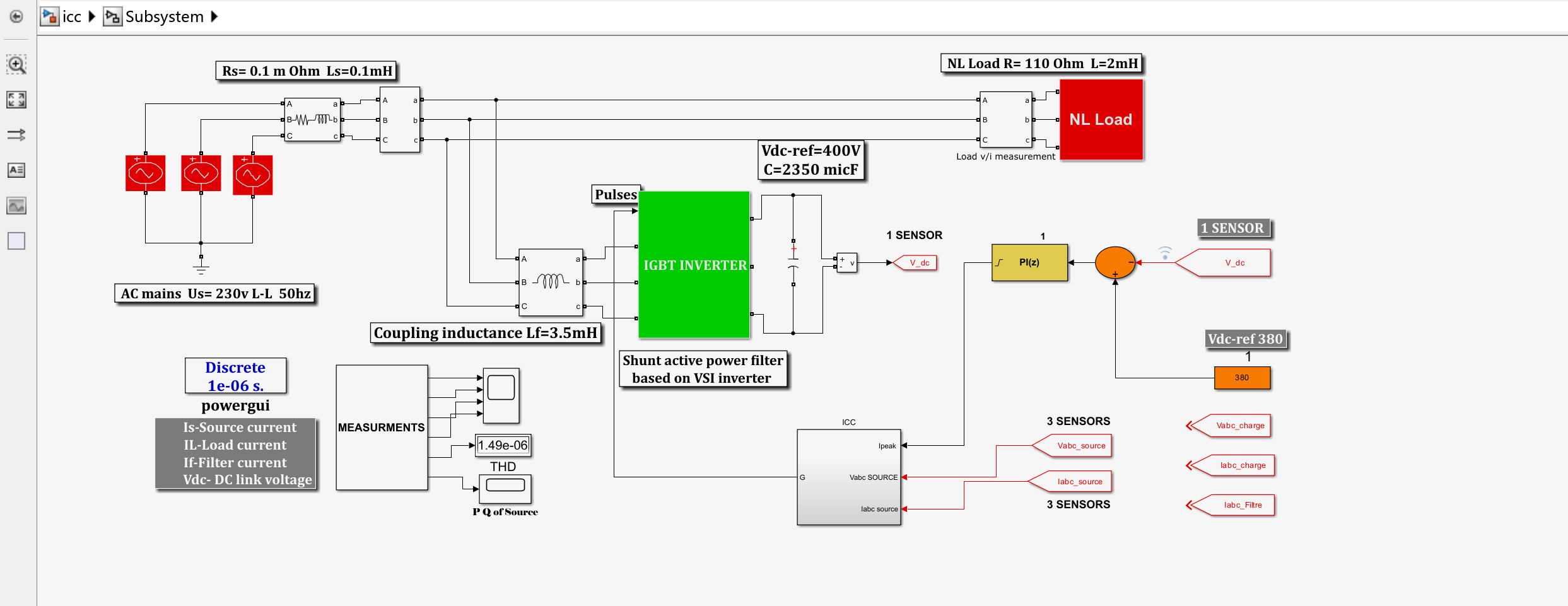 间接电流控制法(ICC)主要是通过控制有源电力滤波器的输出电压,间接地控制输出电流。它根据电网的电压、电流等参数,计算出有源电力滤波器应输出的电压指令,通过调节逆变器的开关状态,使输出电压按照指令变化,从而实现对输出电流的控制。