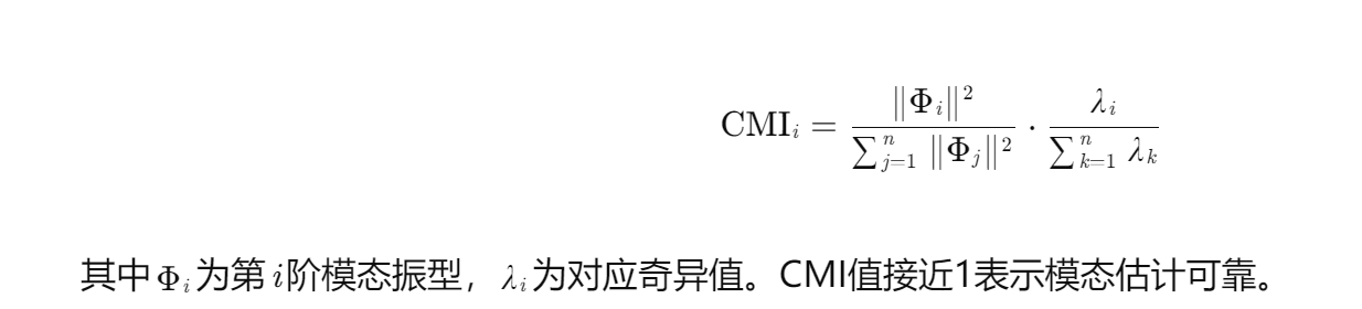 结构健康监测和模态分析在航空航天、土木工程等领域具有重要应用价值。随机子空间辨识(Stochastic Subspace Identification, SSI)作为输出-only模态分析方法,因其无需输入激励信息而得到广泛应用。本文提出一种改进的SSI算法,重点研究一致模态指标(Consistent Modal Indicator, CMI)和模态参与因子(Modal Participation Factor)的计算方法,为模态验证和结构动态特性分析提供更可靠的指标。
