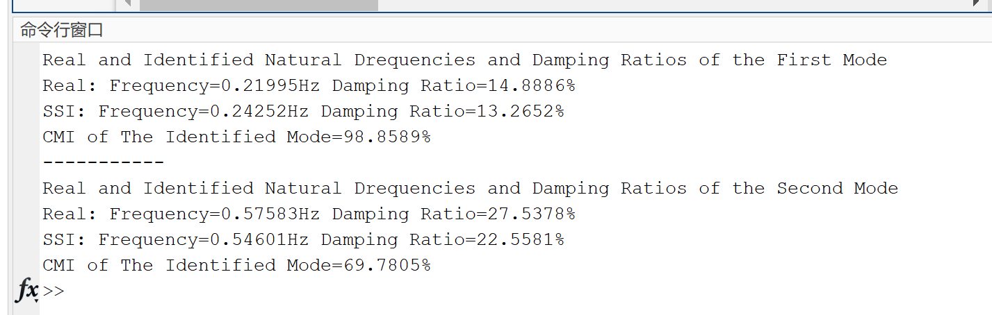 | 模态 | 真实频率(rad/s) | 估计频率(rad/s) | 真实阻尼 | 估计阻尼 |
