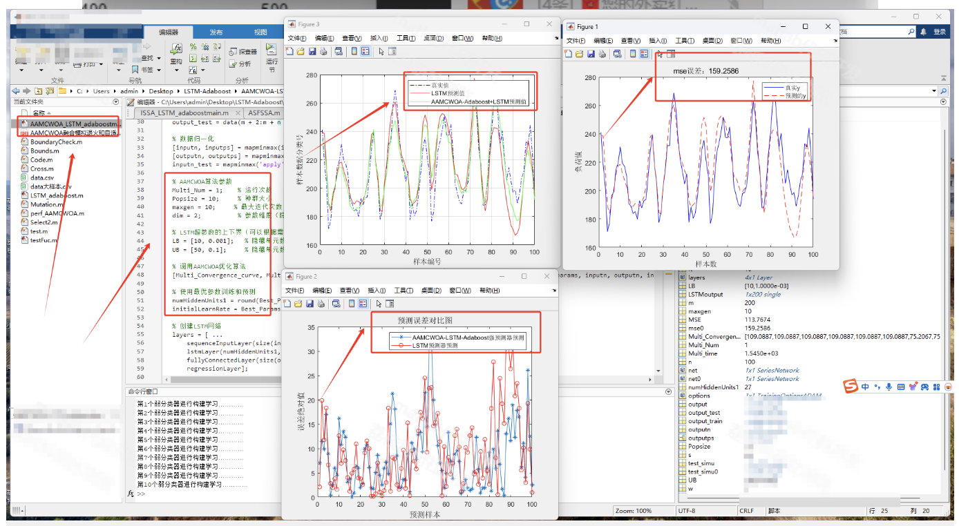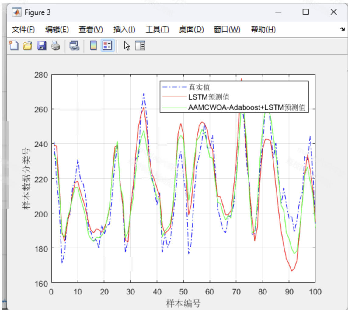 - 集成学习增强:将10个AAMCWOA优化的LSTM弱分类器通过Adaboost加权集成,降低方差并提升鲁棒性。