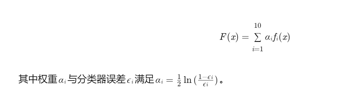 Adaboost集成层:根据弱分类器误差分配权重,加权合成最终预测结果: