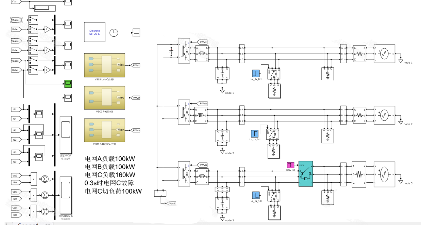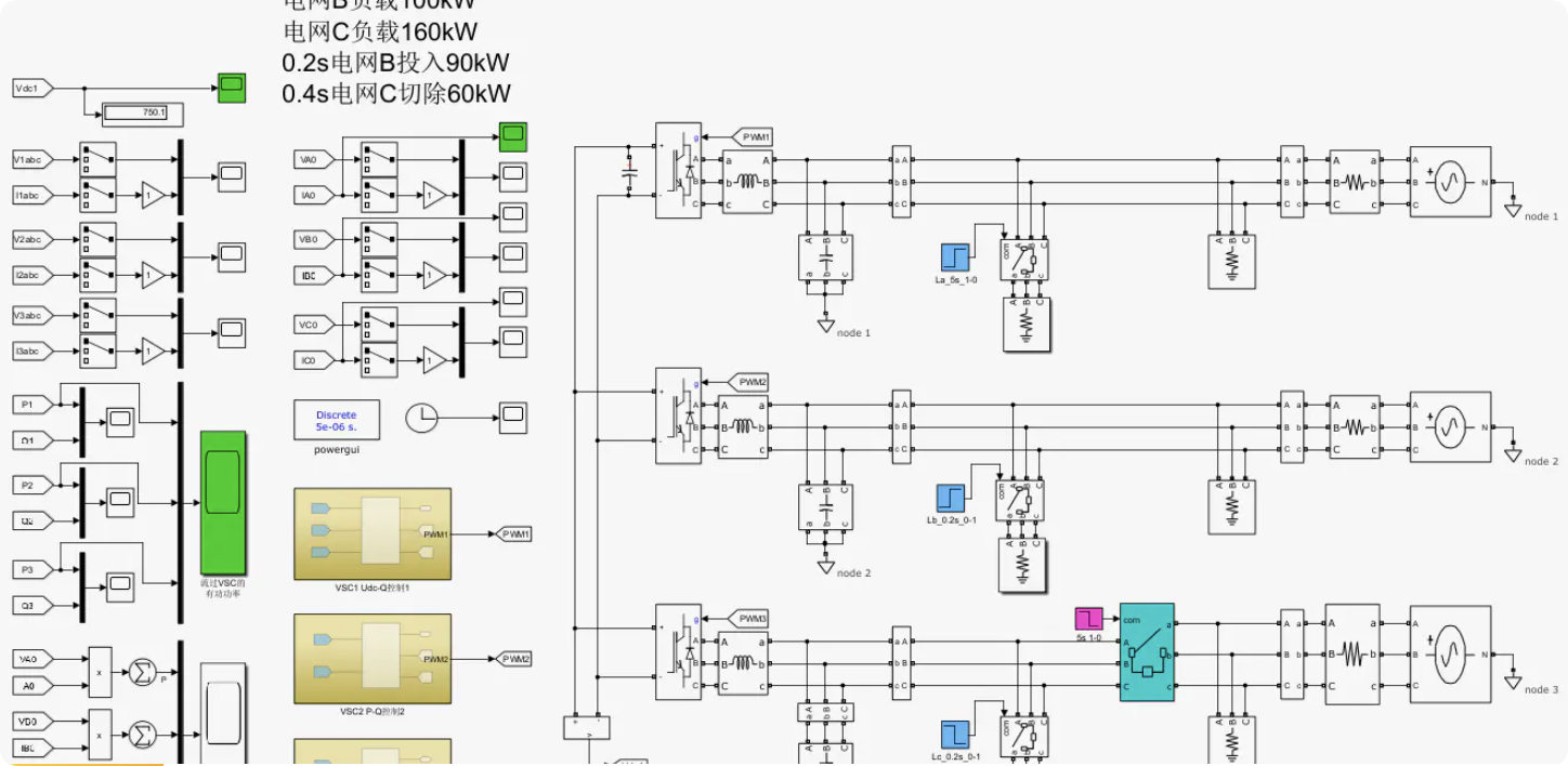 - VSC2和VSC3采用PQ控制策略,即控制有功功率和无功功率的输出。