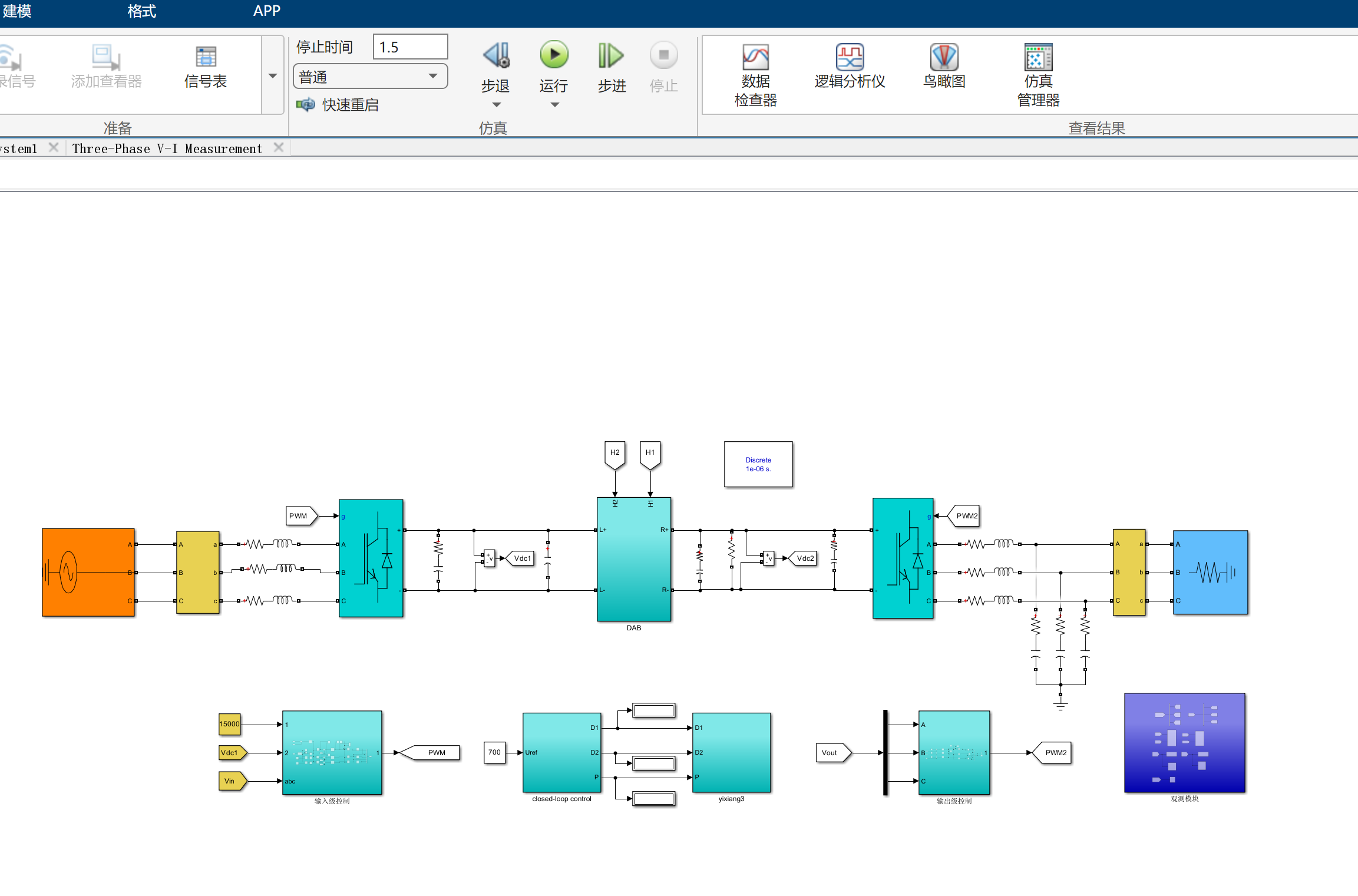 含中间直流环节的三相PET仿真需结合拓扑特点选择建模方法: