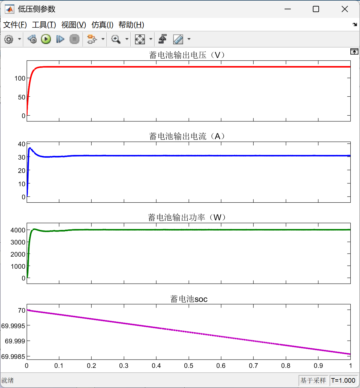 在放电模式下,设定一个期望的输出电压值,运行仿真模型。仿真结果显示,输出电压能够在较短时间内稳定在期望值附近,且波动范围较小。同时,电池的放电电流也能够按照控制策略的要求进行限制,避免了电池的过放现象。这表明放电模式下的输出电压外环、电池电流内环的双闭环控制策略能够有效地实现输出电压的稳定控制与电池的合理放电。
