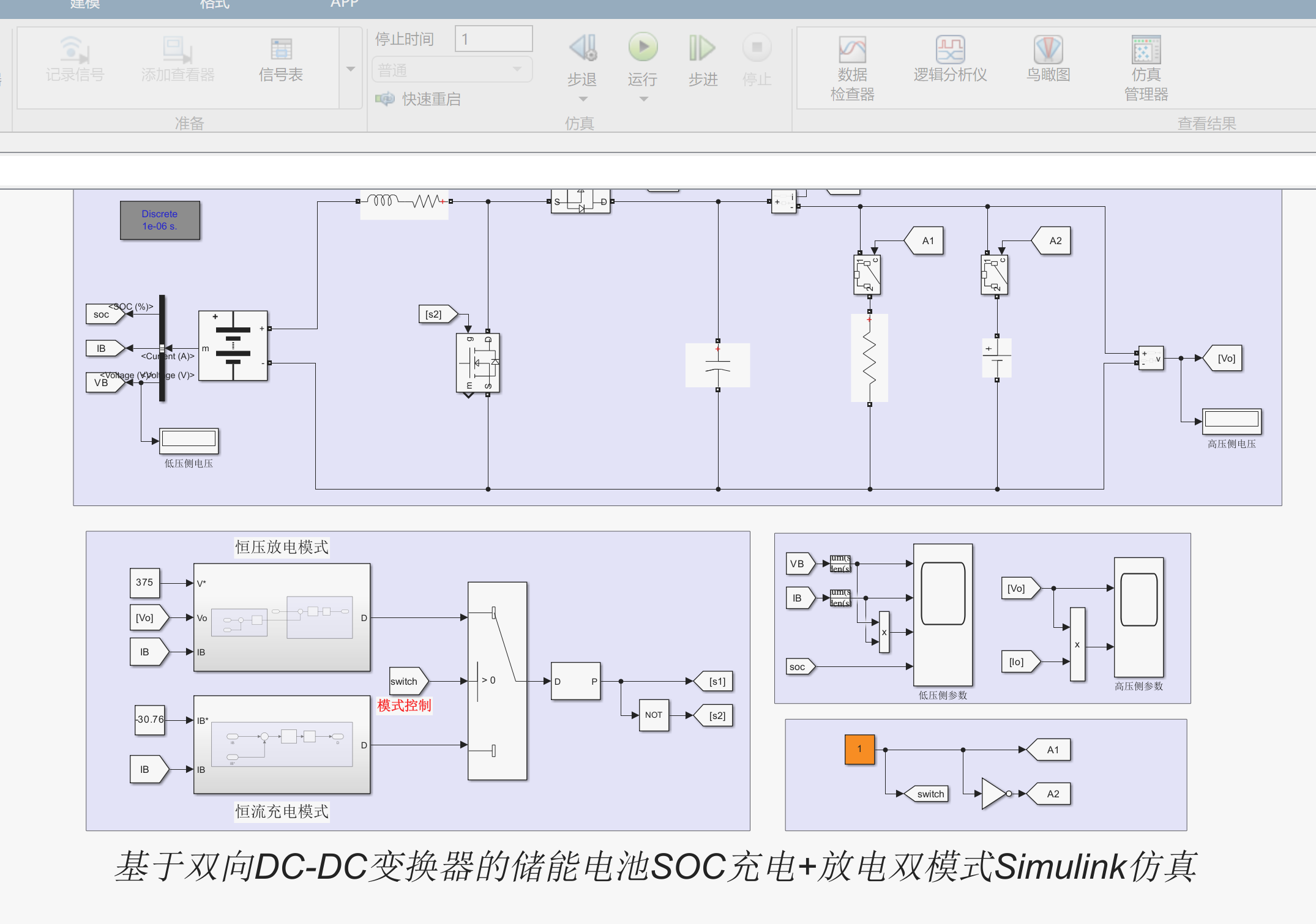 基于双向DC-DC变换器的储能电池SOC充电+放电双模式Simulink仿真研究