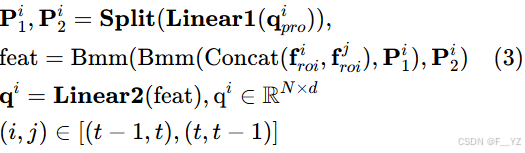 Spatial-temporal fusion module(STF):时空融合模块使同一个配对的 bbox 可以相互交换时间信息,以确保能够完成两个连续帧的数据关联。给定 ROI 特征
