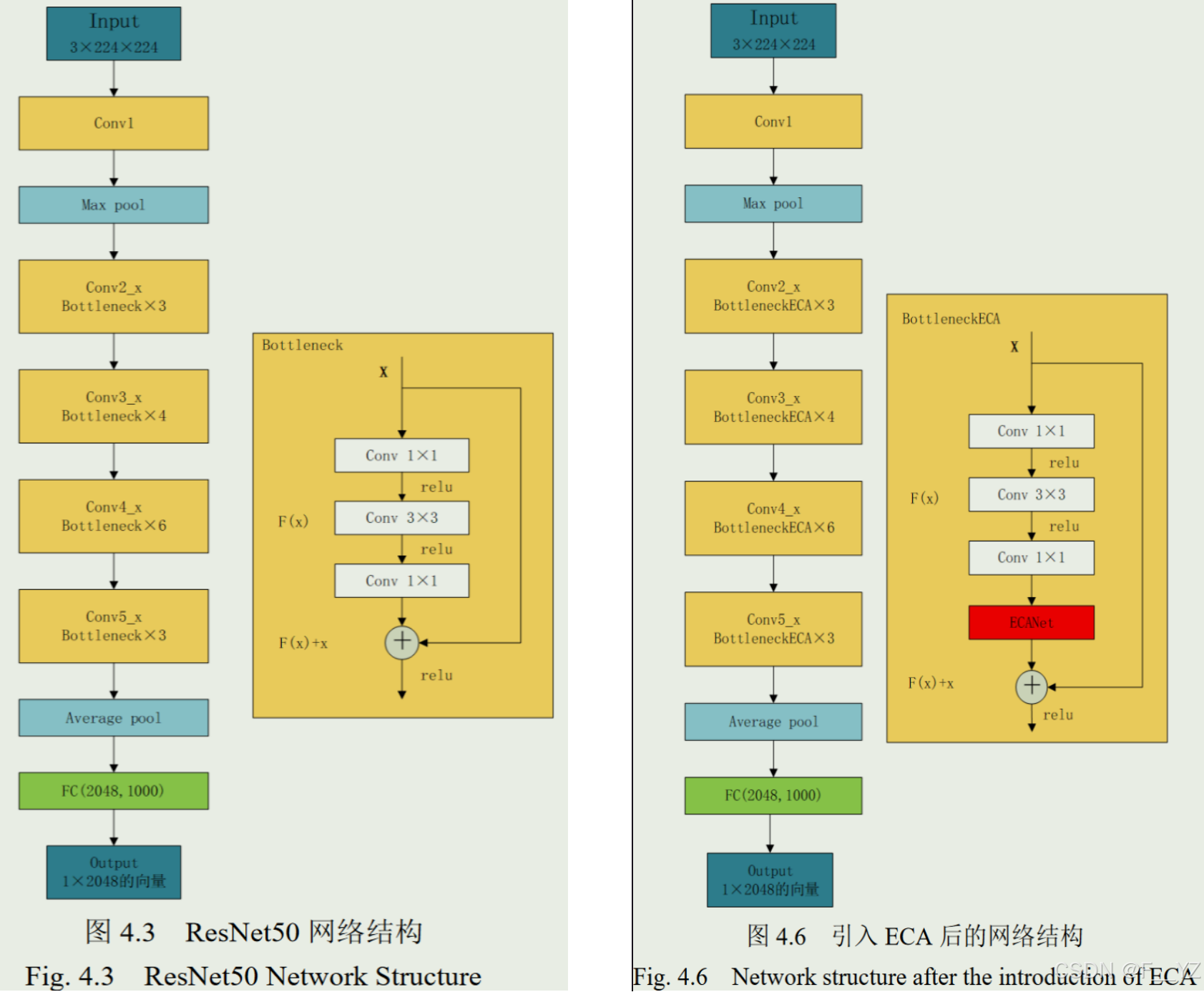 作者在ResNet50基础上进行改良,在每一个残差块上都加入了ECA注意力机制,以提高深度特征提取的效果。