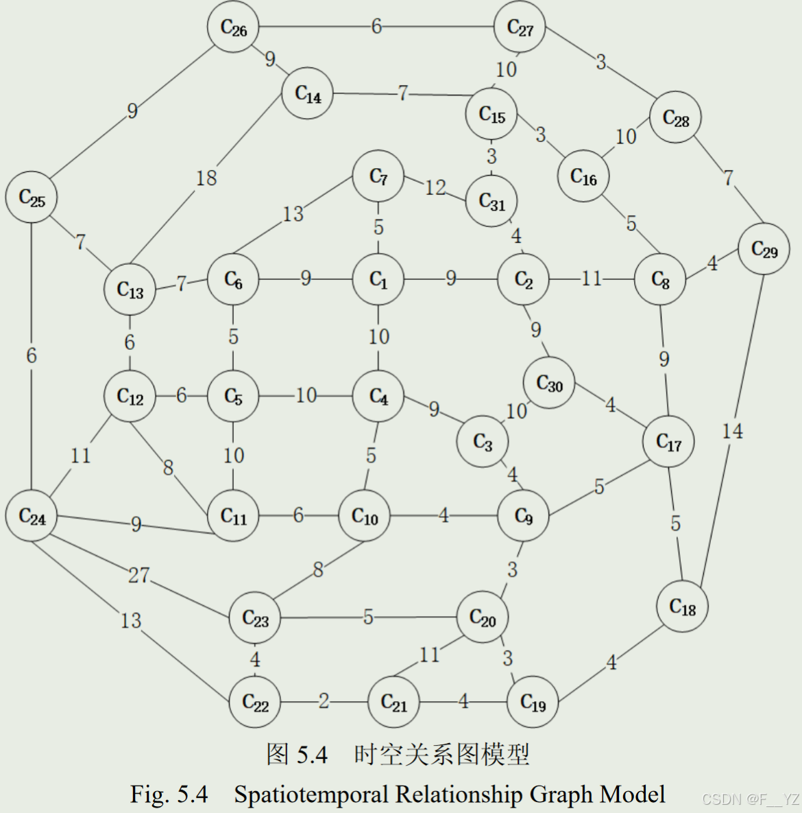 在空间关系上,假设模型为加权无向图,以路段分叉口作为图的节点,路段作为图的边。