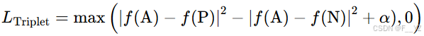 三元组损失函数:缩短正样本在特征空间里的距离,并且增加负样本在特征空间里的距离。