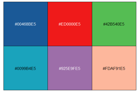 - 首先需要导入"ggsci"包,获取指定期刊的配色方案(以“lancet”期刊配色风格为例);
