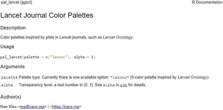 - 通过"??ggsci::pal_lancet"命令查看函数具体用法;