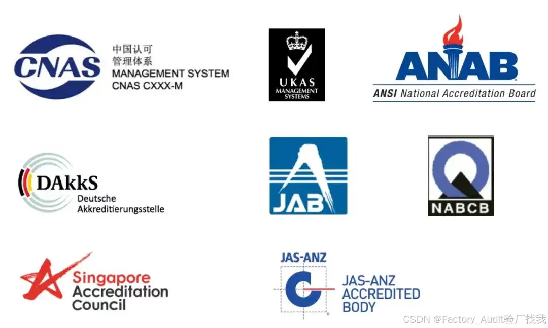 全球绝大多数国家都有专门的认可机构。当然,在其它国家也有对应的国家认可机构,如美国的ANAB、英国的UKAS,德国的DAkkS、日本的JAB等等。根据世贸组织(WTO)和国际认可论坛(IAF)的有关规定,各国家认可机构通过签署多边互认协议,相互承认带有其认可标识的证书有效性,并且接受在获得认可的认证机构之间的转换。