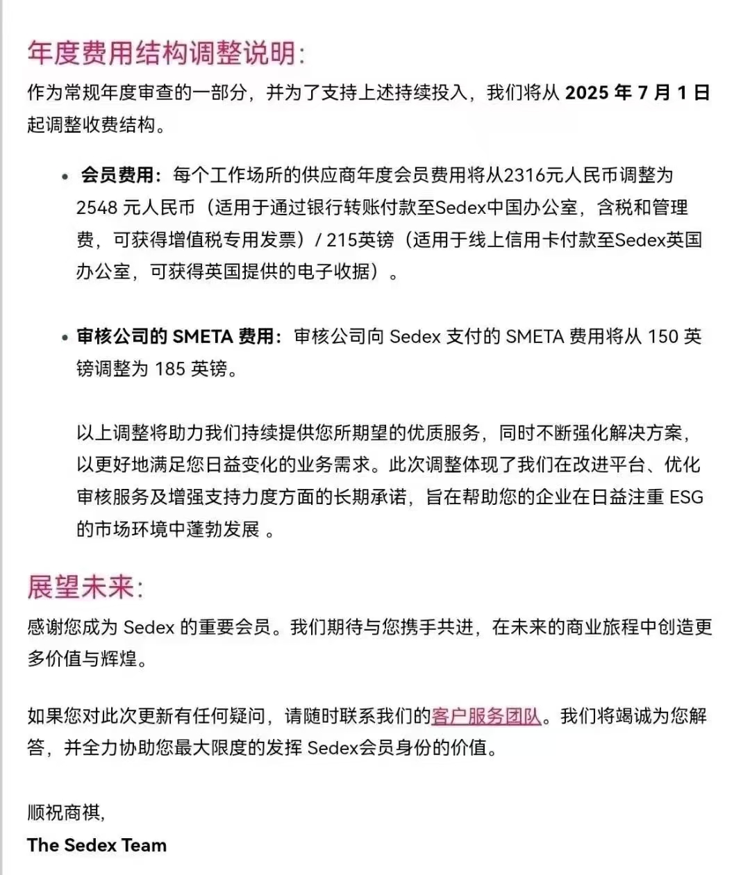 2)2025年7月1日开始,SMETA审核上传报告费用从150英镑涨价到180英镑。