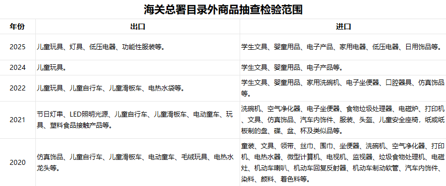 近六年目录外商品抽查检验范围