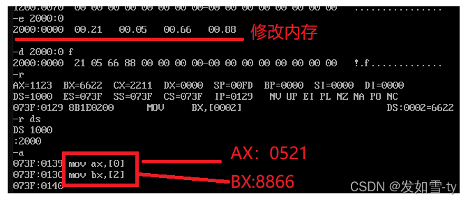 第一条命令执行后AX变为1000H,继续执行后面的指令,如下: