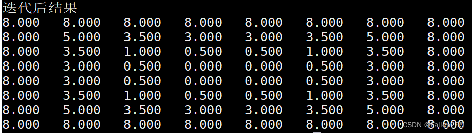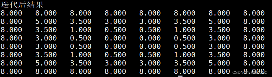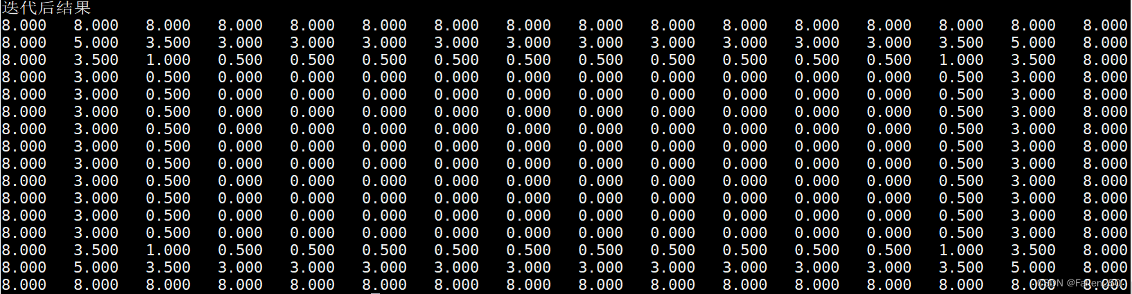 temp[i][j] = 0.25 * (rows[i][j - 1] + rows[i][j + 1] + rows[i - 1][j] + rows[i + 1][j]);