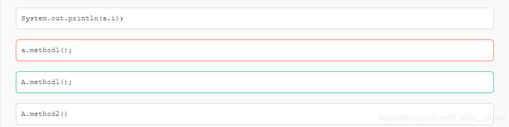 static属性:static方法在编译期就已经生成了,其他方法在运行期生成。非私有的static方法可以用“类.方法名”调用。但是私有的static变量和方法都是不可能被调用的,虽然private static这种写法很少见,但仍然存在,且编译器不会报错。题中static void method2() { }的权限是默认权限,所以可以用“类.方法名”来调用。如果题目中写成private static void method2(){ } ,那么D选项也是错误的。