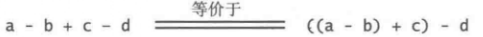 如果优先级相同的操作符相邻,则结合规则( associativity ) 决定它们的执行顺序。除了赋值操作符之外,所有的二元操作符都是左结合的( left - associative)。例如,由于 + 和 - 的所以表达式: