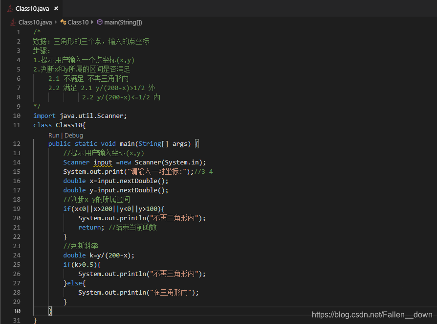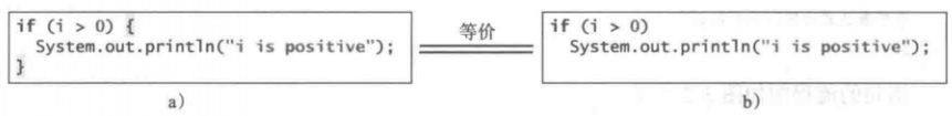 通常,如果花括号中只有一条语句,则可以省略花括号。因此,前例中用于括住语句 System,out.println("Negative input")的花括号可以省略。