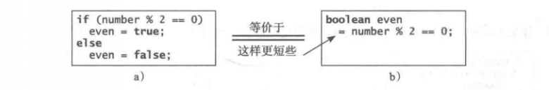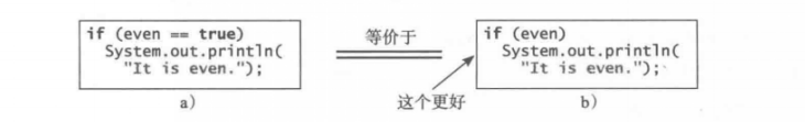 为了检测测试条件中的布尔型变量是 true 还是 false, 像图 a 中的代码这样使用相等比较操作符是多余的。