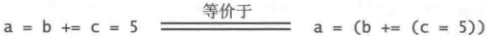 假设赋值前 a、b 和 c 都是1, 在计算表达式之后,a 变成 6,b 变 成 6, 而 c 变成 5。注意: 左结合对赋值操作符而言是说不通的。