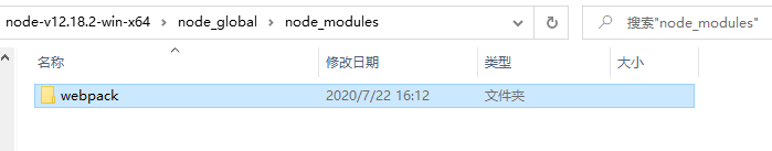 会发现node-global下node_modules文件夹中多了webpack 文件夹,如下图所示: