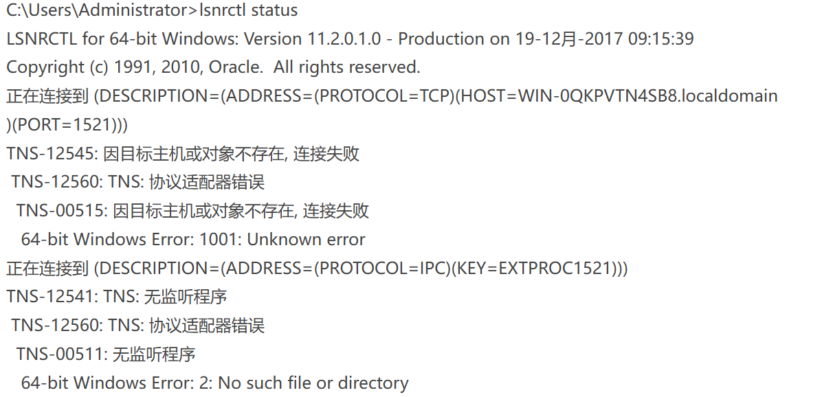 检查监听状态:lsnrctl status