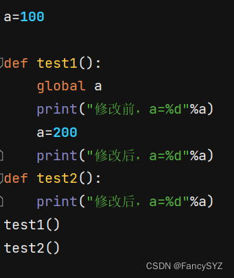 - 全局变量能够在所有的函数中进行访问如果在函数中修改全局变量,那么就需要使用 global 进行声明,否则出错