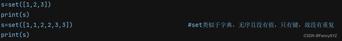 - set是无序的,重复的元素会被自动过滤