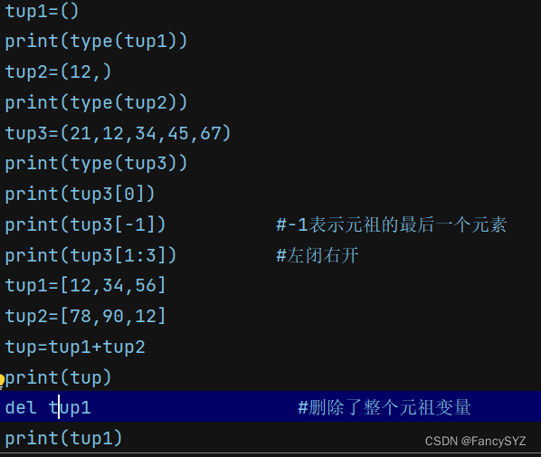 - 删除时,是删除整个元组,不是元组中的元素