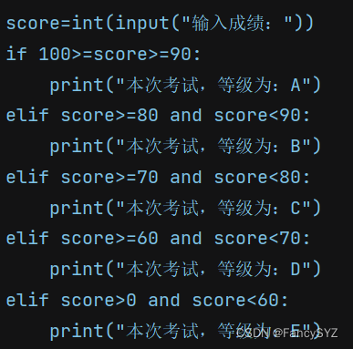当然,我们经常会遇到多个条件的情况,这时就用到了if-elif-else结构,其中elif可以有多个,而末尾的else也可以被elif代替,它会依次检查每个条件测试,直到遇到通过了的条件测试