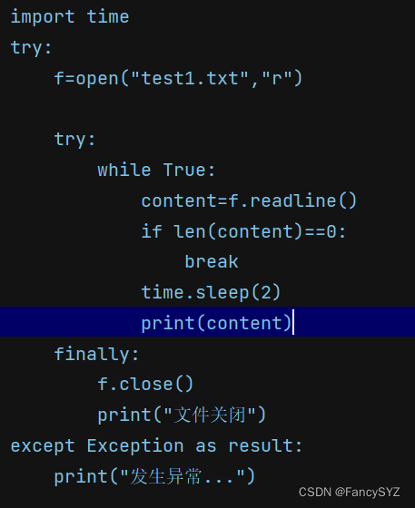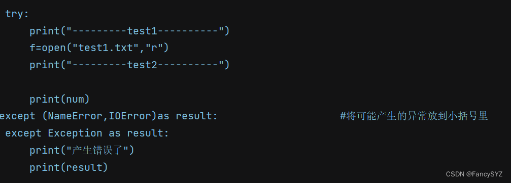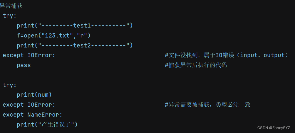 这时,就需要进行异常捕获,其目的是为了检测可能异常的代码块,防止因局部代码异常而使得整个代码报错无法运行