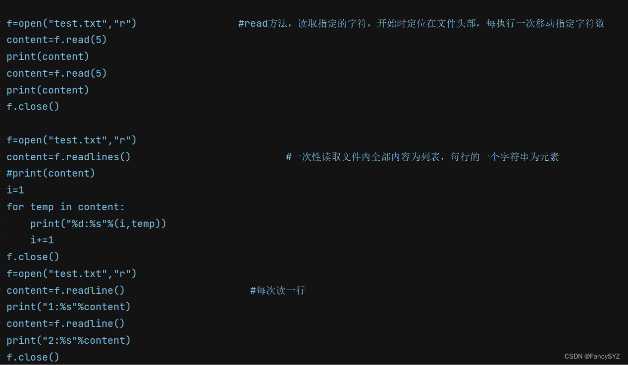 1.如果open是打开一个文件,那么可以不用写打开的模式,即只写 open(‘test.txt’),默认是只读