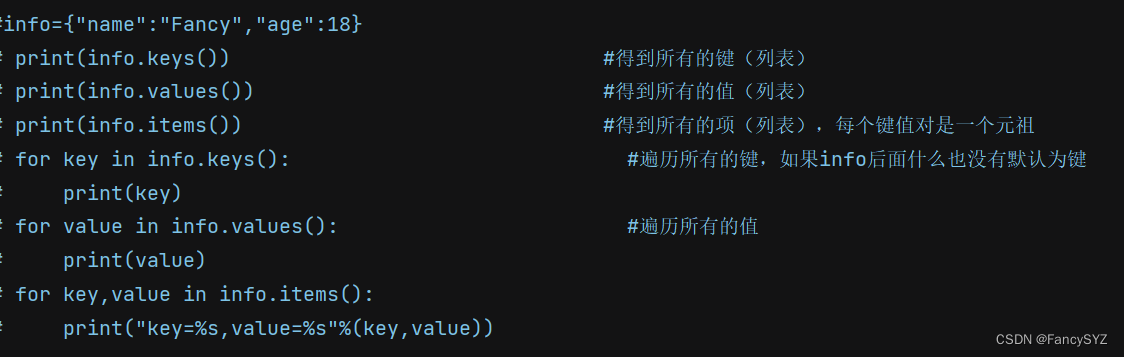 遍历所有键值对:for key,value in 字典名.items() (key和value分别为两个参数,储存键和值)