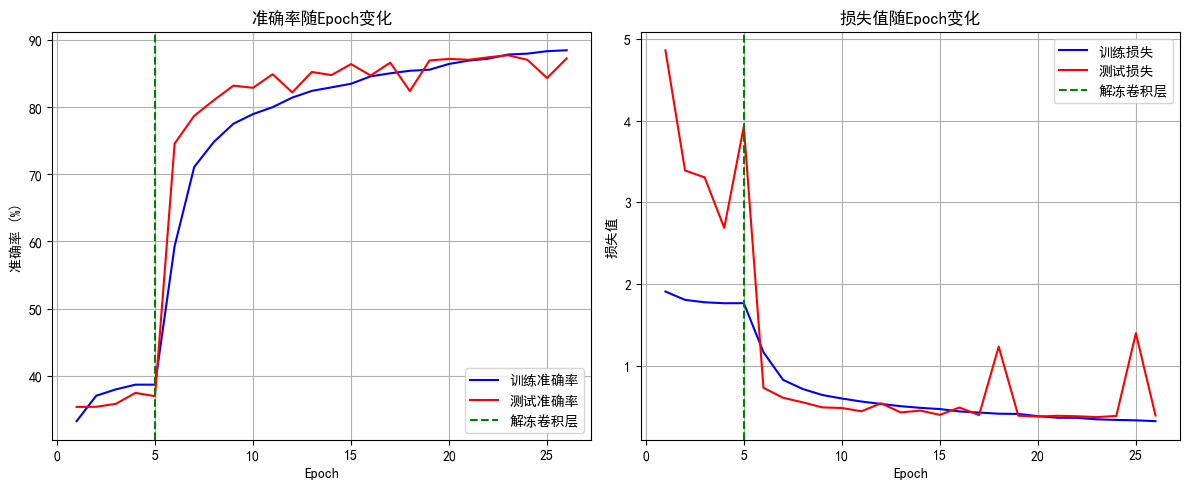print(f"保存最佳模型: 第 {best_epoch} 轮, 准确率 {best_accuracy:.2f}%")