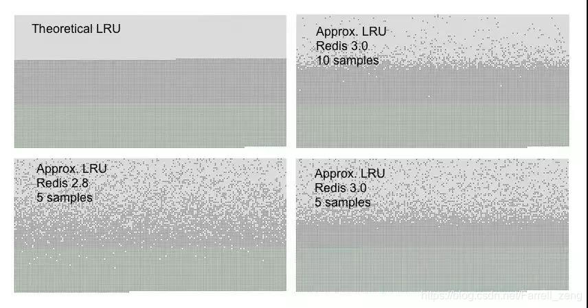 Approx LRU Redis 3.0 5 samples:Redis 3.0中近似LRU算法(采样值为5)