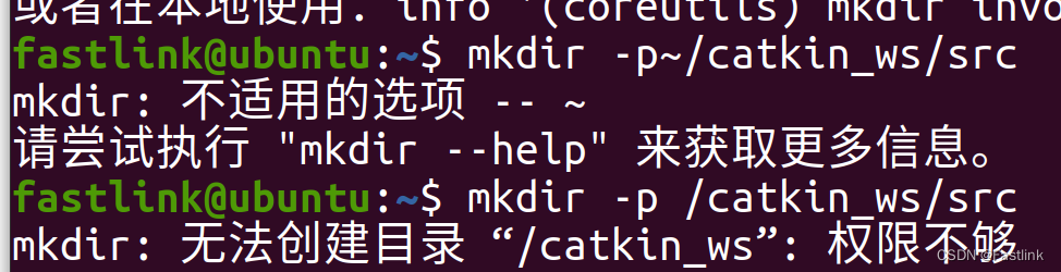 正确命令应该是:mkdir -p ~/catkin_ws/src/