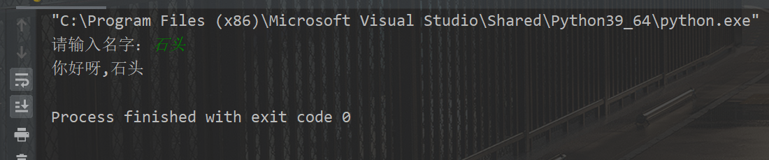 在这个示例中,程序首先显示提示信息“请输入姓名:”,然后等待用户输入,此时用户可以输入任意内容,按回车即表示完成输入。用户输入的内容(比如“石头”)会被赋值给变量name。最后,程序会打印出“你好呀,石头”
