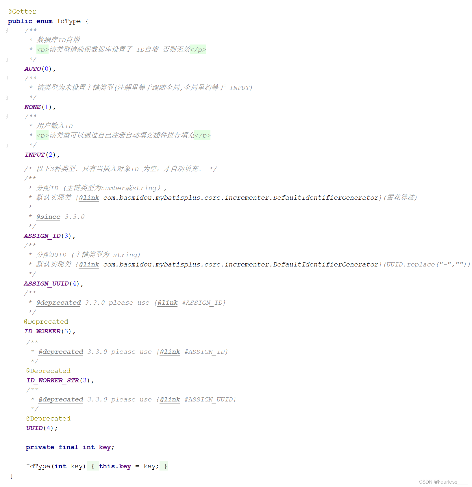 其中的id生成策略的取值来自枚举类 IdType 如下: