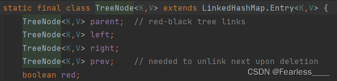 并且 TreeNode 继承了 LinkedHashMap 里面的 Entry,而LinkedHashMap.Entry又继承了HashMap.Node 因此 TreeNode 内部也含有键值对