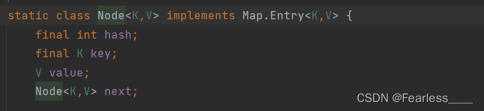HashMap 有个静态内部类 Node ,在HashMap中每个元素都是一个 Node ,并且 Node 实现了 Map中的Entry接口,Node中有四个变量