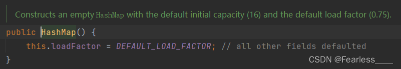 下面是HashMap的无参构造函数,只进行了一个赋值操作,并未创建table数组