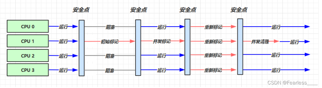 从上面我们可以看到,只有 初始标记 和 重新标记 阶段需要STW,而这两阶段的时间又非常短,因此能达到更好的响应时间
