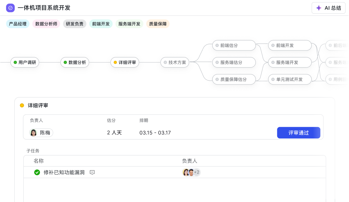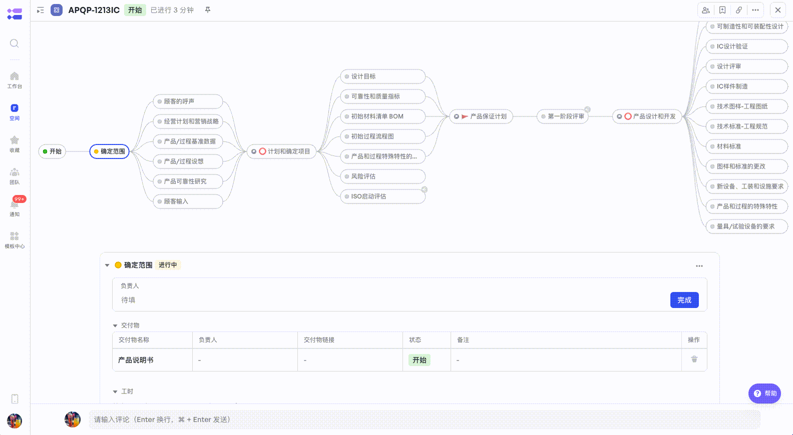 任何复杂的项目,都能抽象为标准的节点流。协作的SOP就能用工具去沉淀和呈现,员工自然就会遵循设定好的流程协作,信息直接通过流程同步,大大减少了大型项目里的沟通工作。