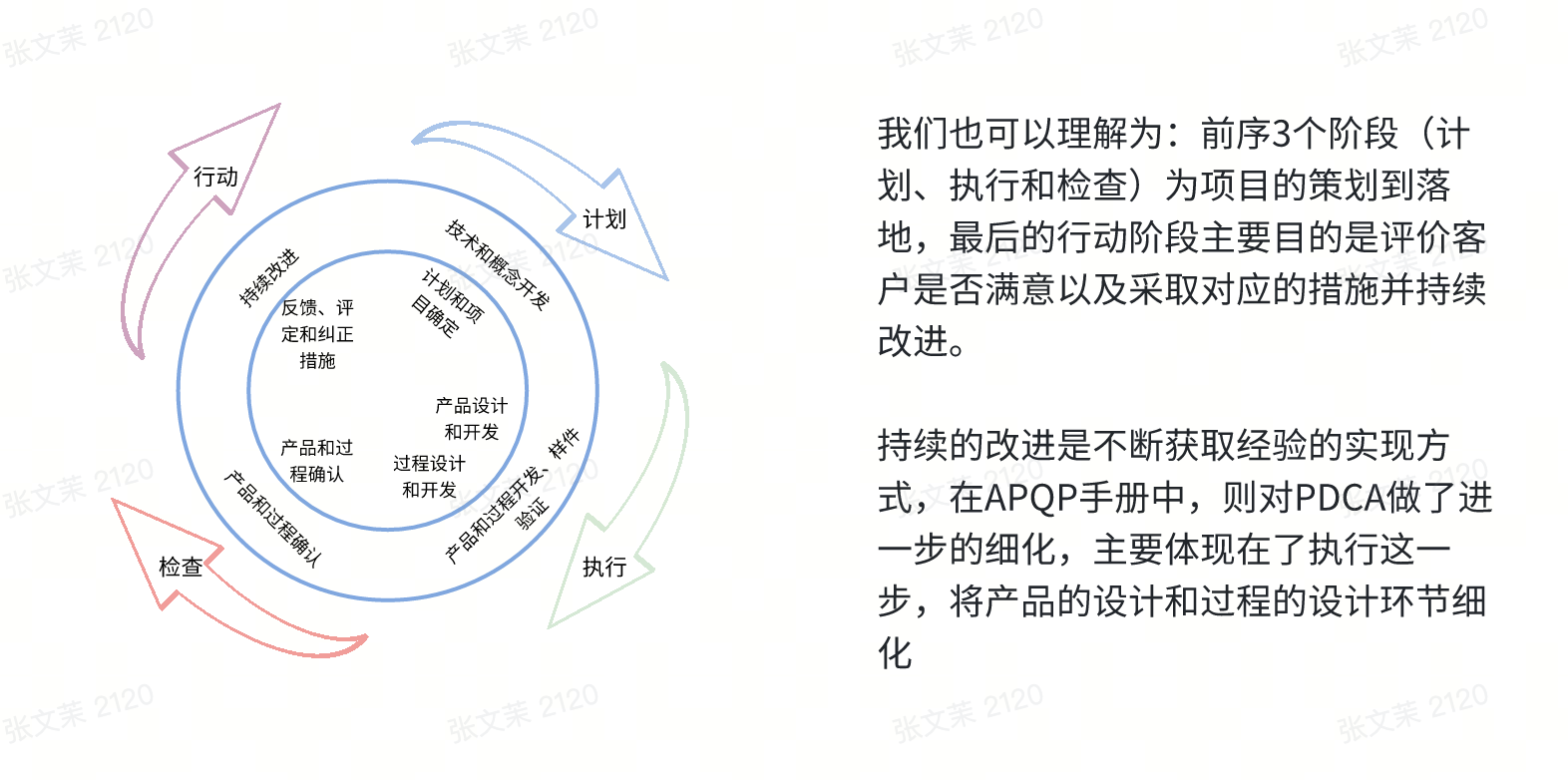 产品的设计和开发是一个非常典型的PDCA循环(Plan-Do-Check-Action),这四个阶段分别反映了产品设计和开发的阶段以及进度: